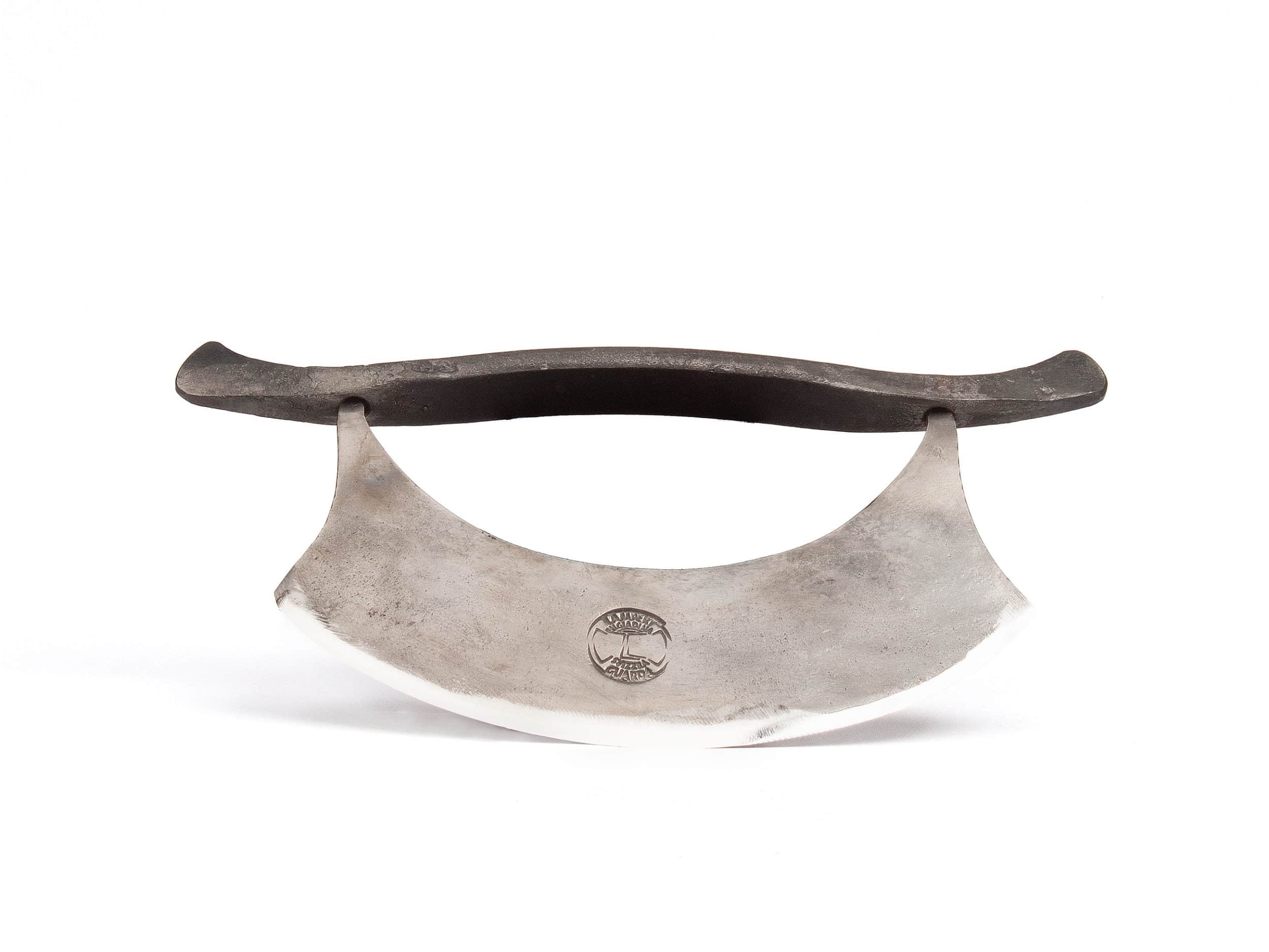 Mit dem Wiegemesser aus der denkmalgeschützten Schmiedewerkstatt von Thomas Lampert, schneidest Du Kräuter, Gewürze,… spielend und «wiegend» leicht klein. Sofort lieferbar ab Lager.