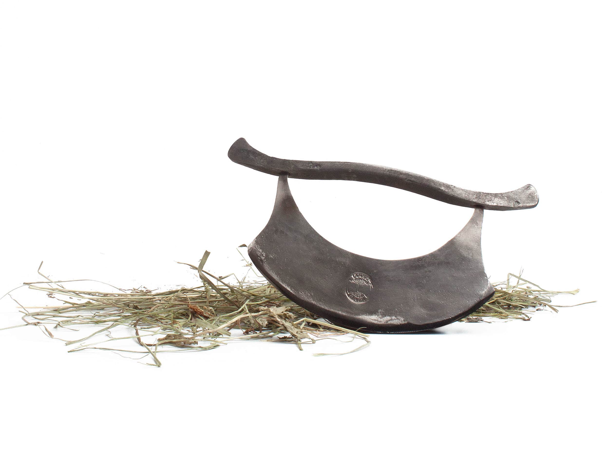Mit dem Wiegemesser aus der denkmalgeschützten Schmiedewerkstatt von Thomas Lampert, schneidest Du Kräuter, Gewürze,… spielend und «wiegend» leicht klein.